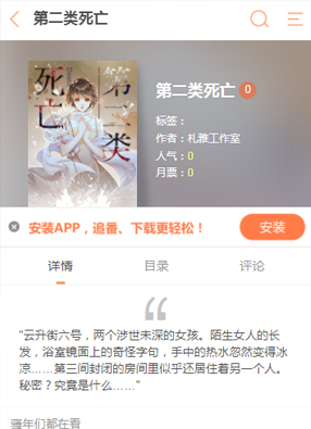 漫画《第二类死亡》讲述了这似乎隐藏着不可告人的秘密。在这个房间里面,这里的两个女孩遇见了陌生女人的长发,浴室镜面的一些奇怪字符!这里隐藏的秘密好像与众不同的奇怪。